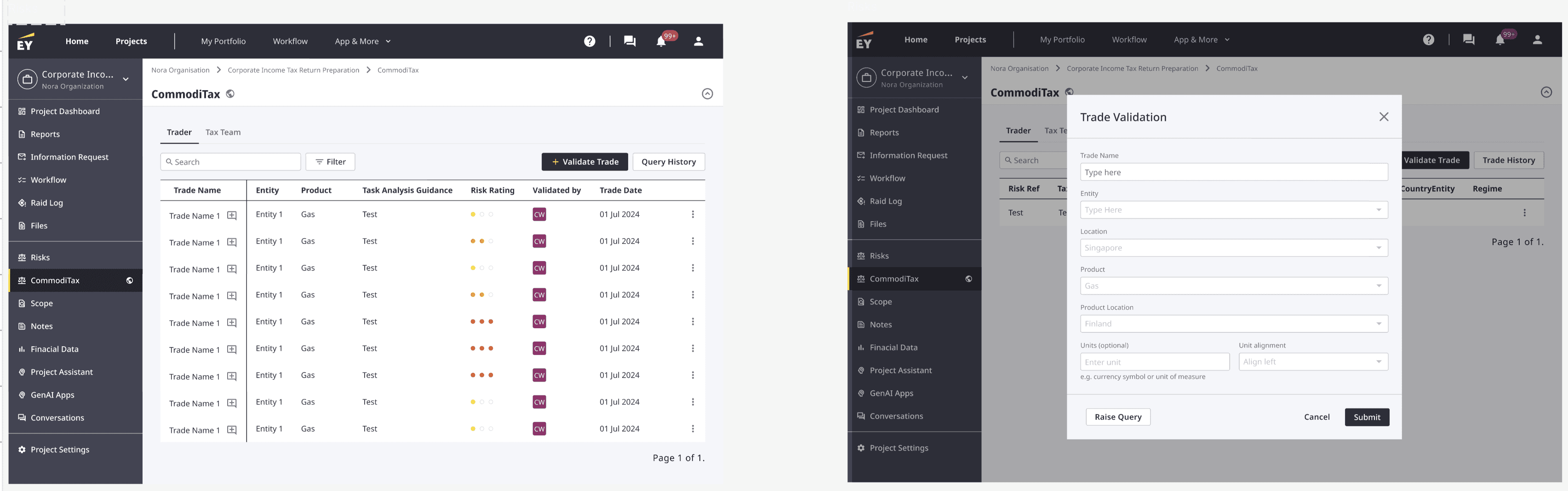 EY's commodities trading clients operate across complex, multi-jurisdictional tax environments where a single trade can trigger significant regulatory and financial risk. Before CommodiTrade, traders relied on email chains and manual back-and-forth with tax teams to get approval before executing trades — a slow, inconsistent process with no reliable audit trail.